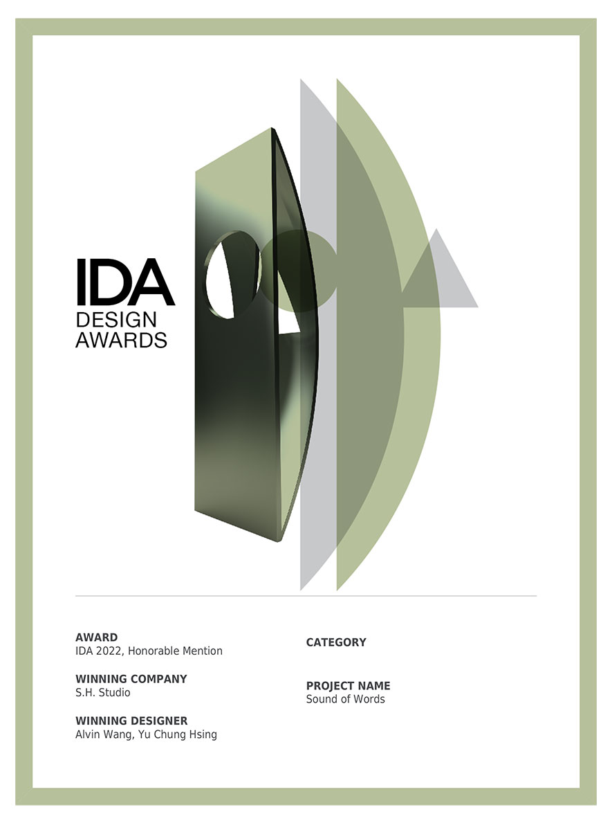 相禾設計以作品《芸芸相引》《潺芸聲湛》《茫原栗色》獲得評審青睞,拿下2022 IDA Design Awards 「Honorable Mention」 榮譽獎項。