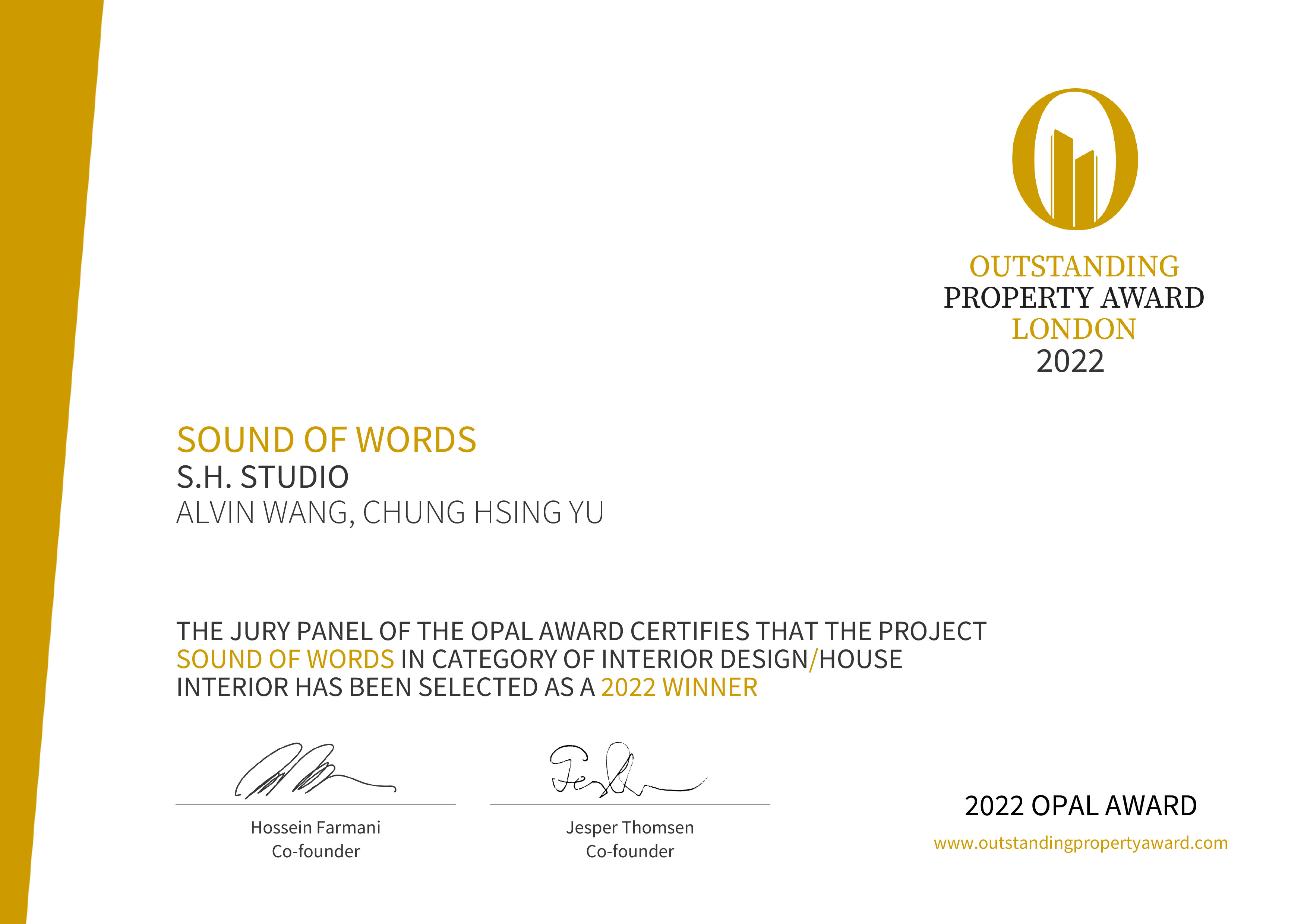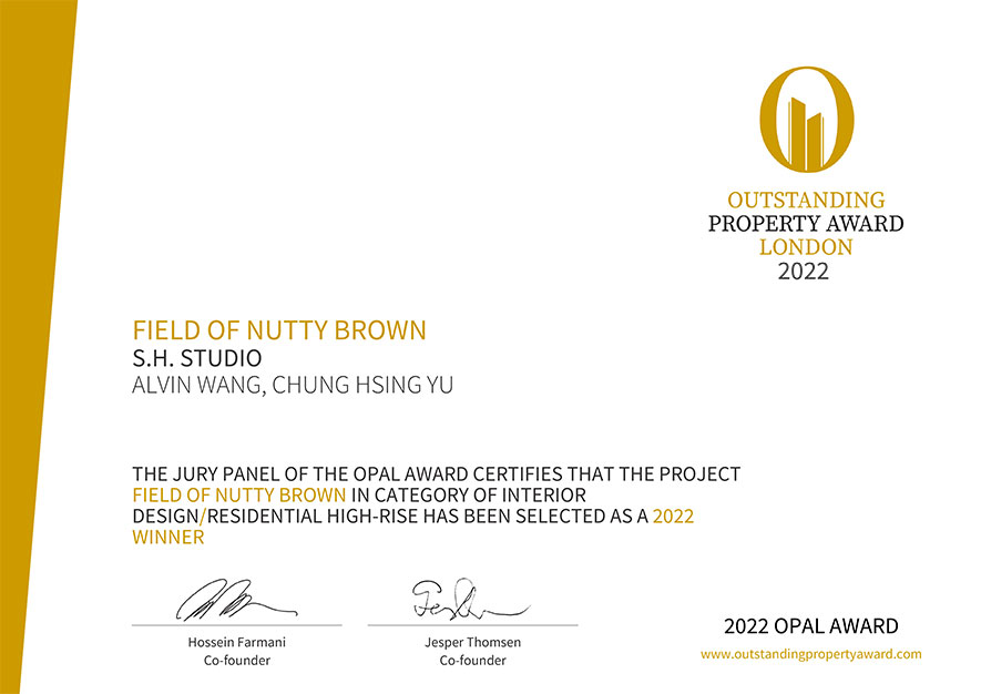 相禾設計以精心打造的住宅作品《潺芸聲湛》《 茫原栗色》及商空作品《芸芸相引》榮獲2022 OPAL倫敦傑出地產大獎 Winner 殊榮。