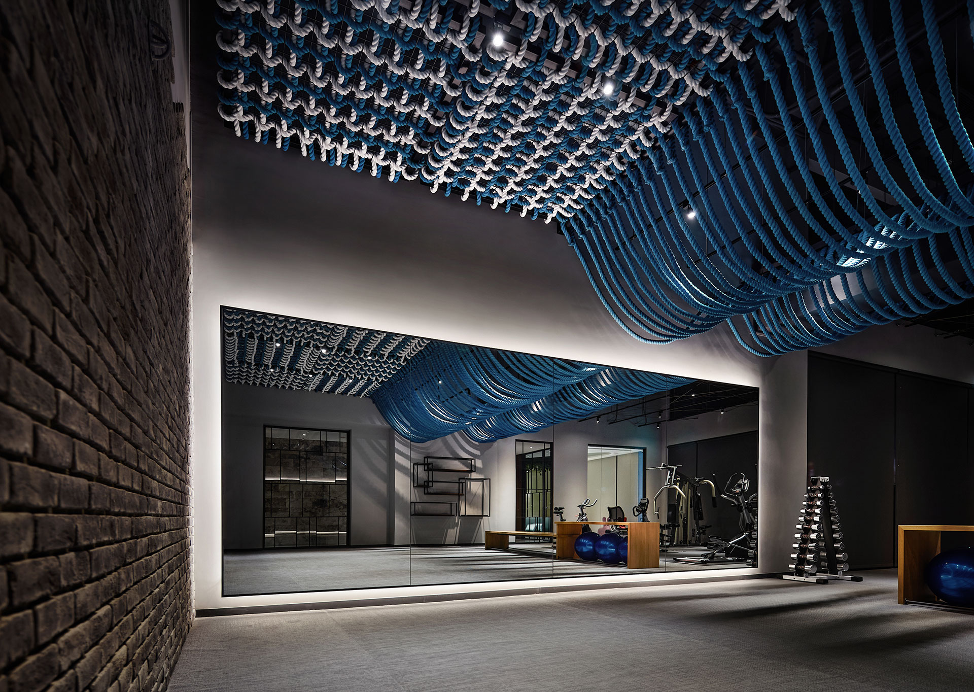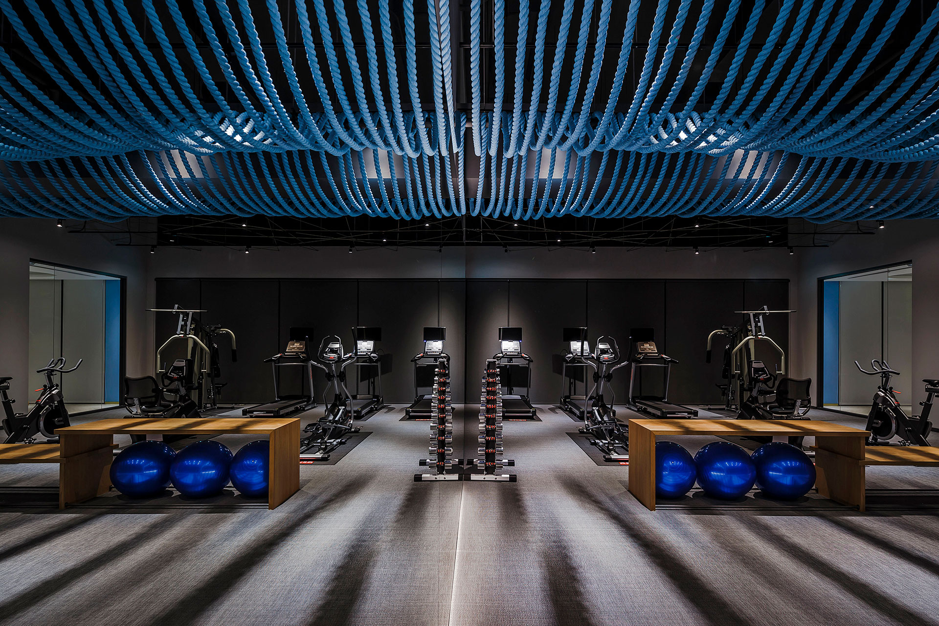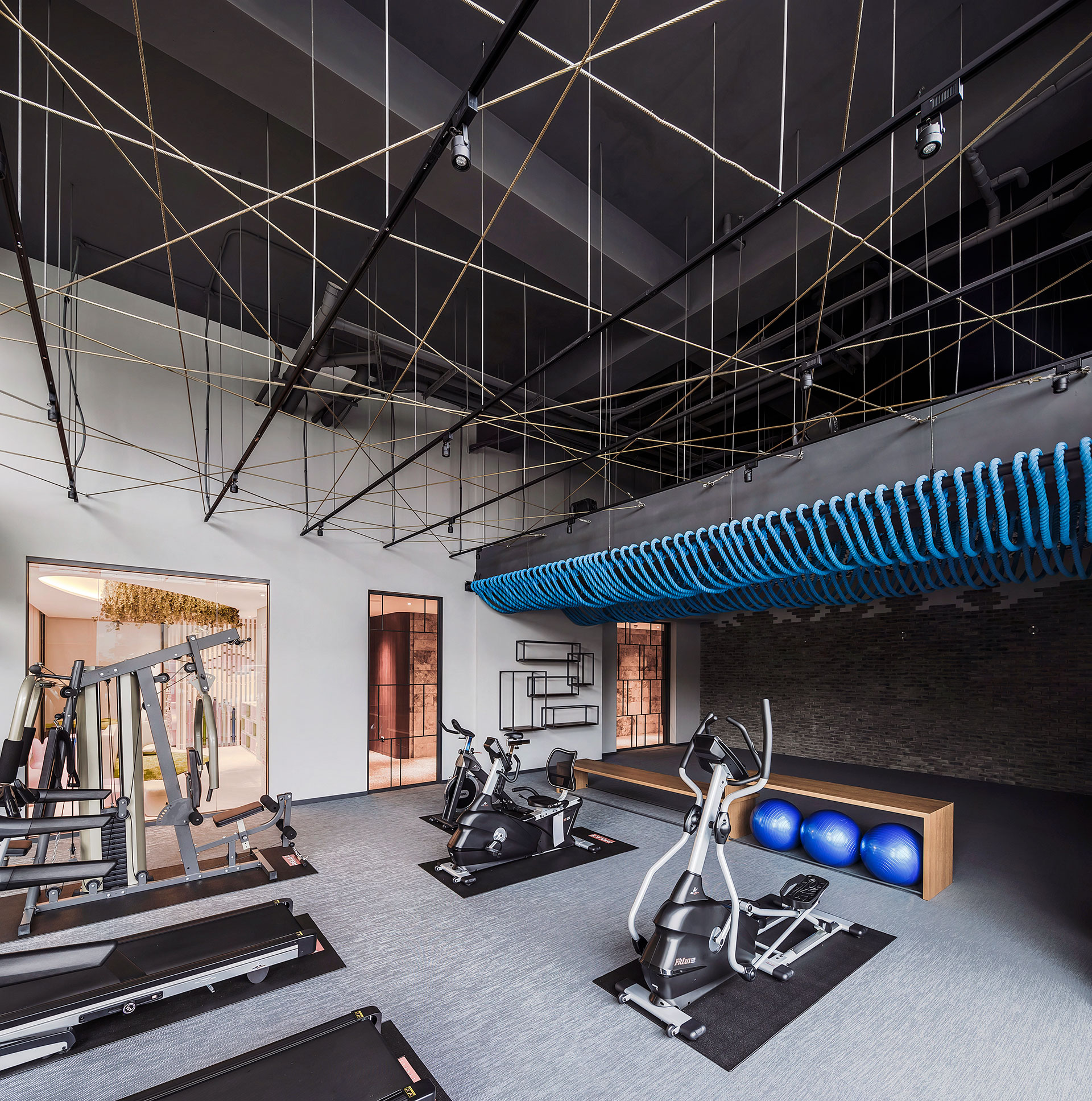 健身房的鋼線與軟繩裝置,如強弱對應的運動張力感。